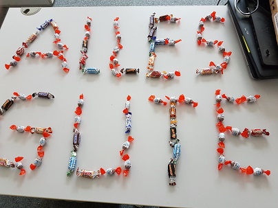 Die Kollegen in meiner Kundenfirma haben heute meinen Schreibtisch dekoriert: