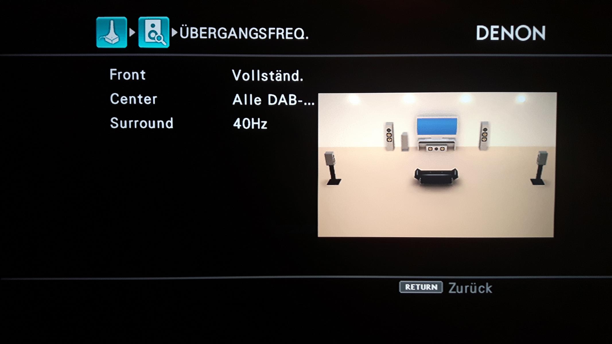 Wenn ich die Nuvero 70 jweils auf klein stelle und bei 40 Hz trenne und dann erneut einmesse, stellt mir der Denon die 3 wieder auf groß und die Übergangsfrequenz ändert er auch wieder.