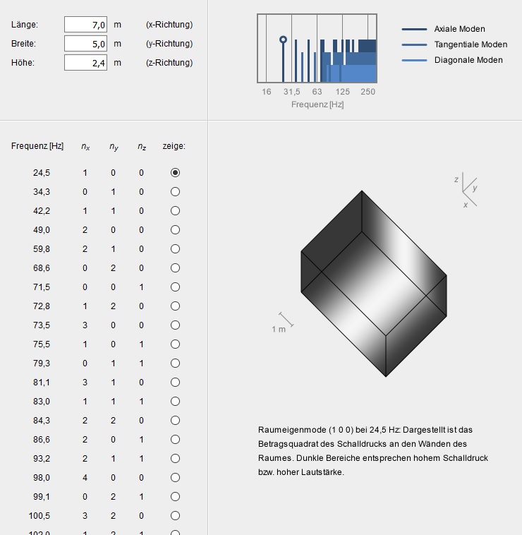 Ich habe mal einen Raummodenrechner bemüht, aber wie es mir scheint kann man hier wohl nur 5 Bilder hochladen. Muss ich wohl in einem weitern Post noch einfügen. Demnach wäre es jedenfalls schon mal bei 24,5 und 34,3 Hz mal fies. Ich habe mal mit dem iPad einen Sinusgenerator ans Apple TV gestreamt und auch mal die Standboxen + den Sub damit gefüttert. Mit dem iPhone habe ich dann gemessen wo es aufdickt. Nun, das klappt nur bedingt. Zum einen gibt es wohl eine Problembereiche, wo die dB Anzeige dann im Bereich von mehreren dB "flackert" zudem ist die Messung insofern nicht so aussagekräftig weil auch z.B. die liebe Schrankwand massiv angeregt wird und das Teil scheppert zum Teil echt fies (besonders die dünne Rückwand). Aber: Die beiden Problembereiche habe ich auf alle Fälle, zudem natürlich über den gesamten Verlauf noch diverse Täler.