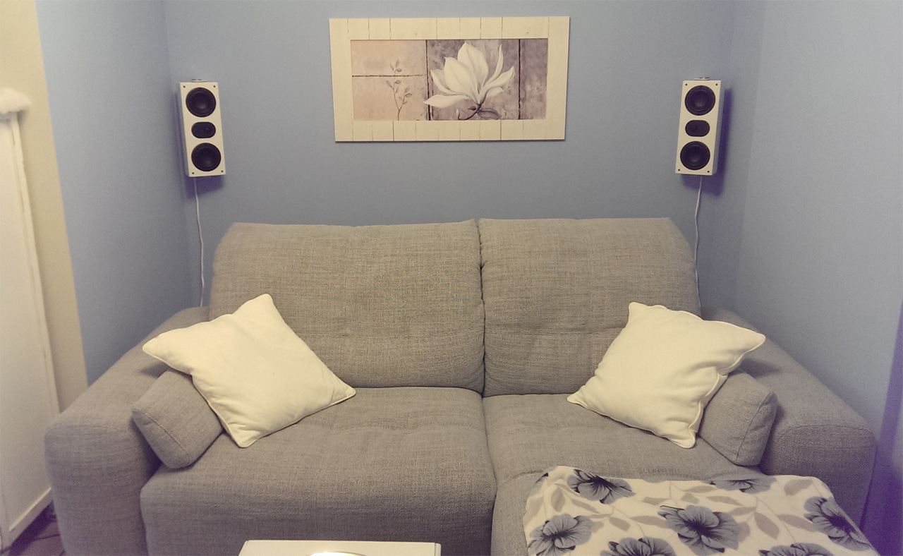Wenn ich nun schon den Direktbetrieb nutze, warum dann nicht gleich die WS-14 austesten? Dies passen ebenfalls gut ins Wohnzimmer und haben den Vorteil, dass ich den Abstand zum Hörplatz erhöhe. Platt an der Wand, entsprechend eingedreht, erhalte ich womöglich bis zu 20cm oder mehr. Also hab ich einfach ein Set WS-14 bestellt und heute getestet.