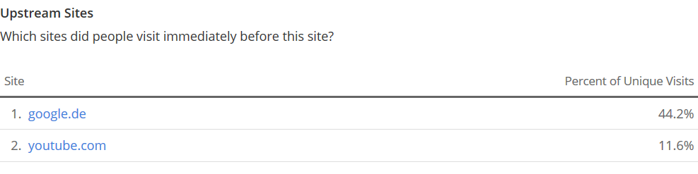 Besonders spannend ist wohl der Punkt: "Which sites did people visit immediately before this site?"