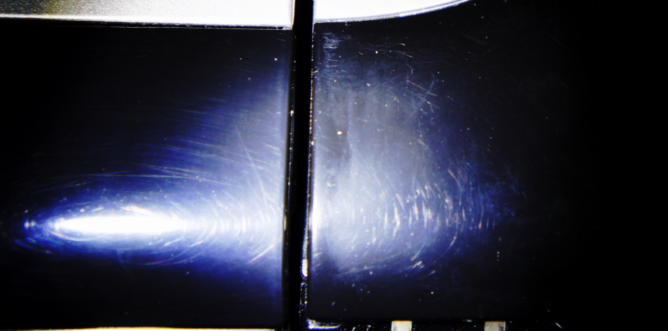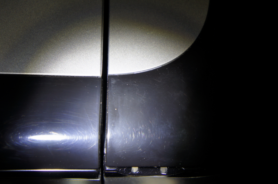 OK hier mal Bilder linke Seite poliert, rechte nur sauber gemacht. Letztes Bild mit erhöhtem Kontrast. OK nicht ganz perfekt, aber schon um einiges besser - denke mit Autolackpolitur gehts auch nicht arg viel besser. Habs erstmal am Drucker ausprobiert, der hat sicher mehr Kratzer als ne Box die man nur mal staubwischt, weil ich da auch ab und zu Unterlagen draufliegen habe.