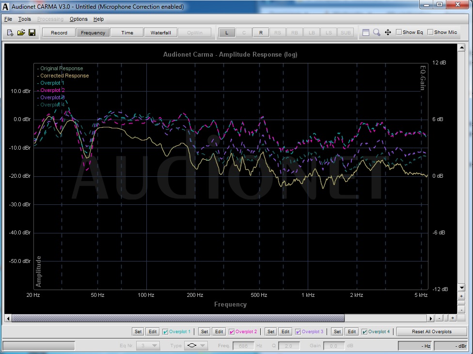 Bitte aber nicht zuviel Wert auf die Messung geben. Bei den unterschiedlichen Pegeln sind die Ergebnisse nicht gut vergleichbar. Gerade im Tiefbass sagt das Gefühl deutlich präziser zu was passiert, als eine Messkurve.