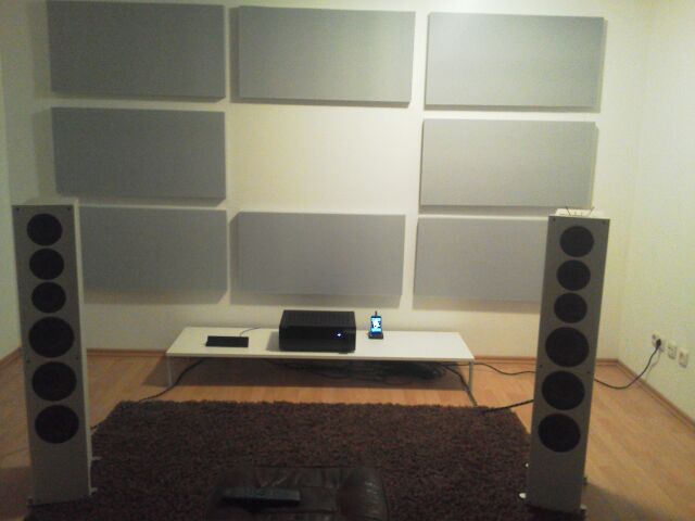 Wie im anderen Thread schon berichtet, ist mein Hörraum 40qm groß. Allerdings mit 10x4 Metern halt viel länger als breit.