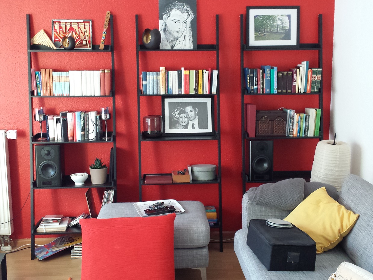 Son weißes Medienrack ist super für Leute ohne Kleinkinder.