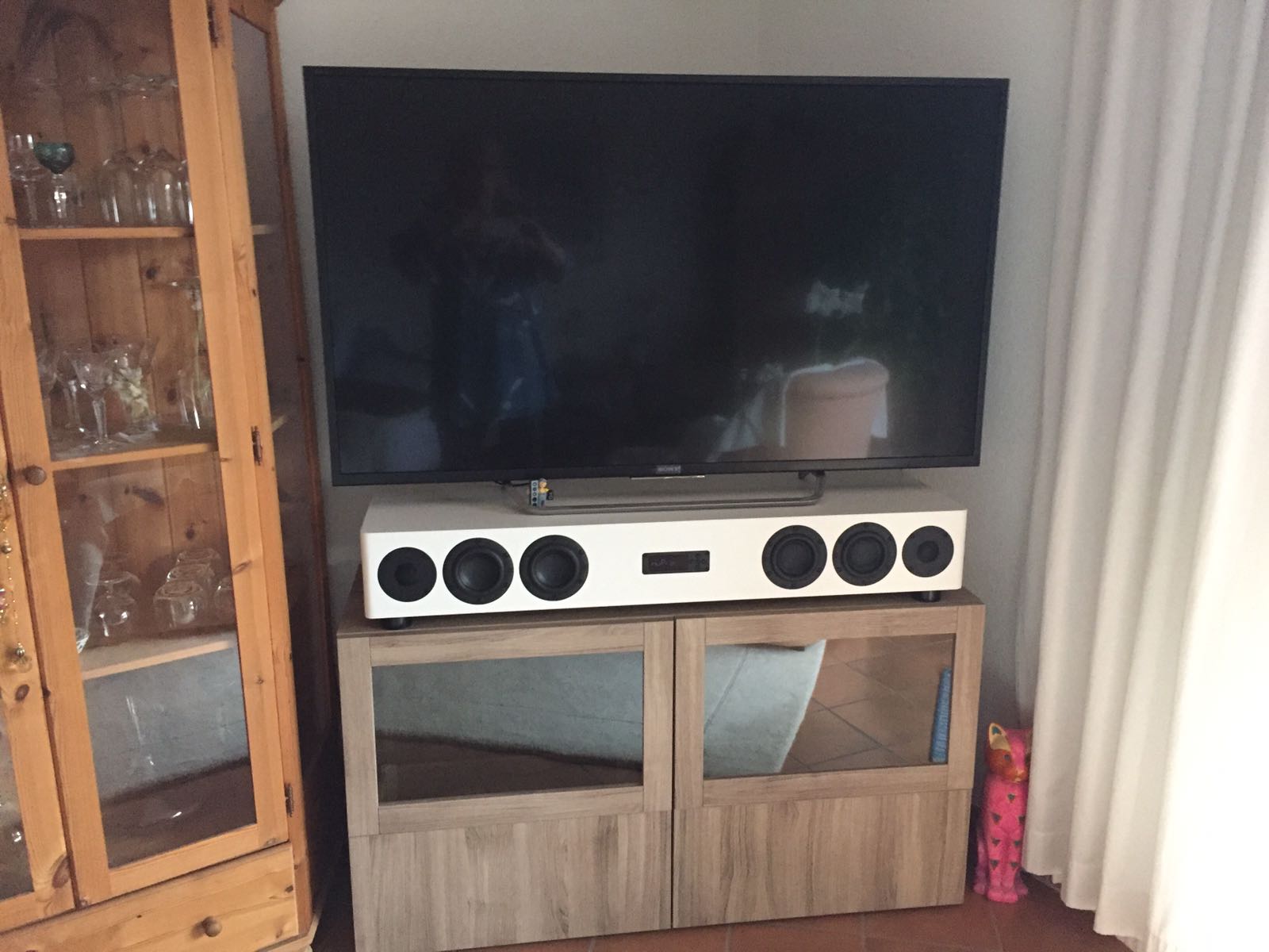 Ich finde es auch selbst ganz sympathisch, dass ich die Soundbar einfach in die Mitte stelle und fertig. Wenigstens ein Raum in dem ich mir nicht mit "könnte man evtl. noch?" das Erlebnis versaue.