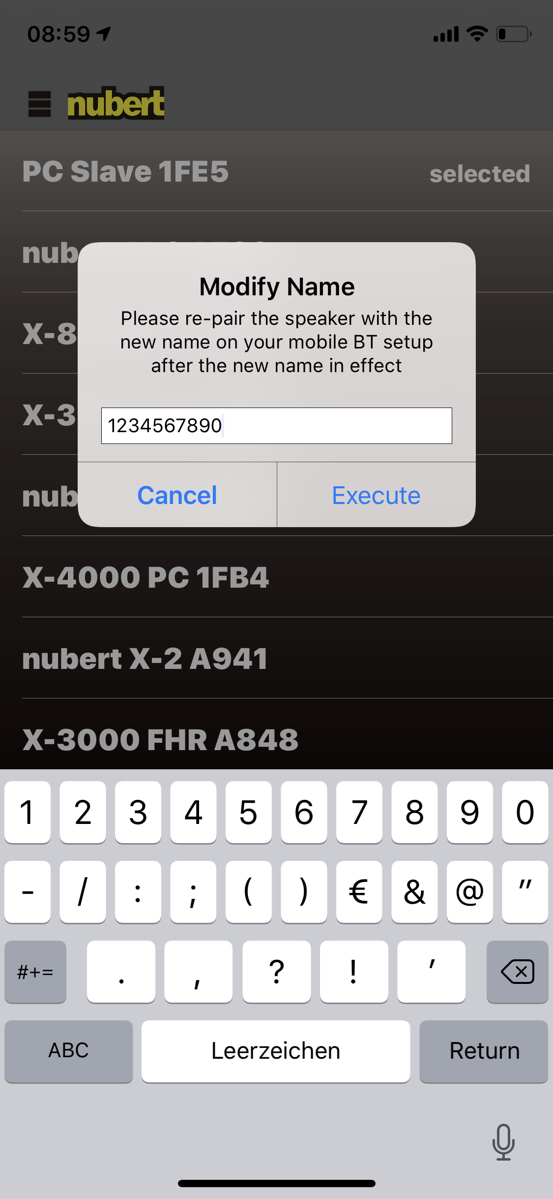KarToon hat geschrieben: [*]Leider lässt sich der Bluetooth-Name der NuPros nicht verändern. Ein „nubert X-4 C…“ ist nicht unbedingt selbstklärend, zumal sich zeitweise gern auch mal die Slave-Box in der App meldet, nur dann halt keine Verbindung zulässt. Das erforderte etwas Eingewöhnung.