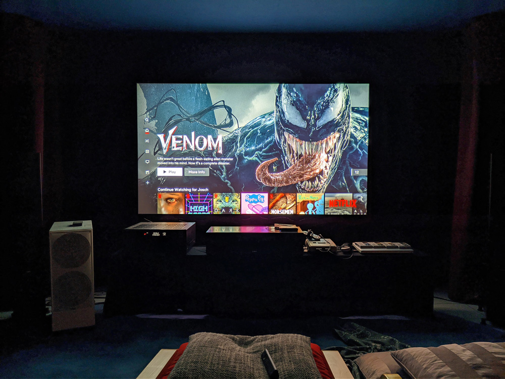 Der Center könnte allerdings auch bündig mit der Leinwand abschließen, damit hier keine Reflexionen sichtbar werden.