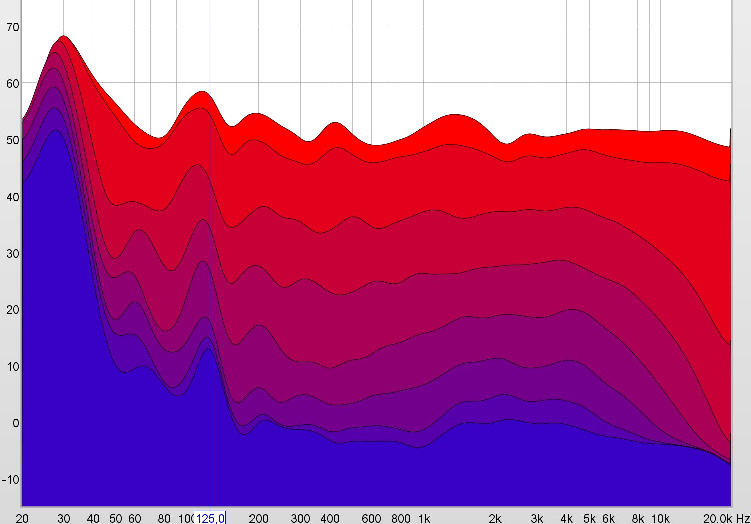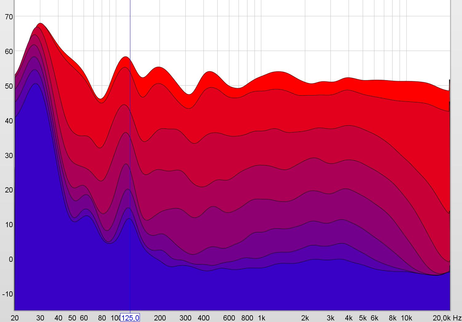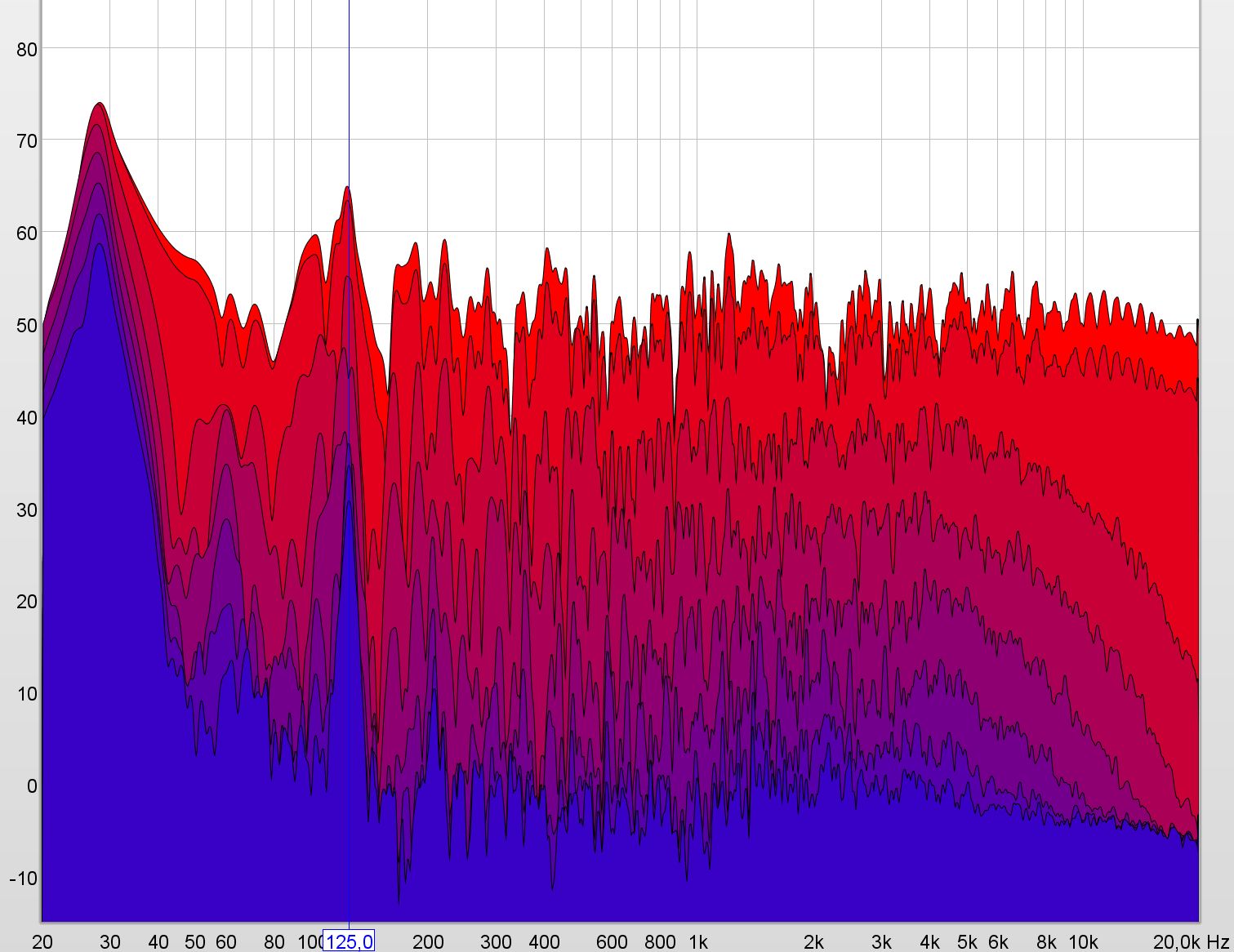 Was im Bereich von 50 Hz bis 100 Hz genau passiert, verstehe ich noch nicht ganz. Wahrscheinlich eine muntere Mischung aus der Vielzahl an Moden in diesem Bereich: