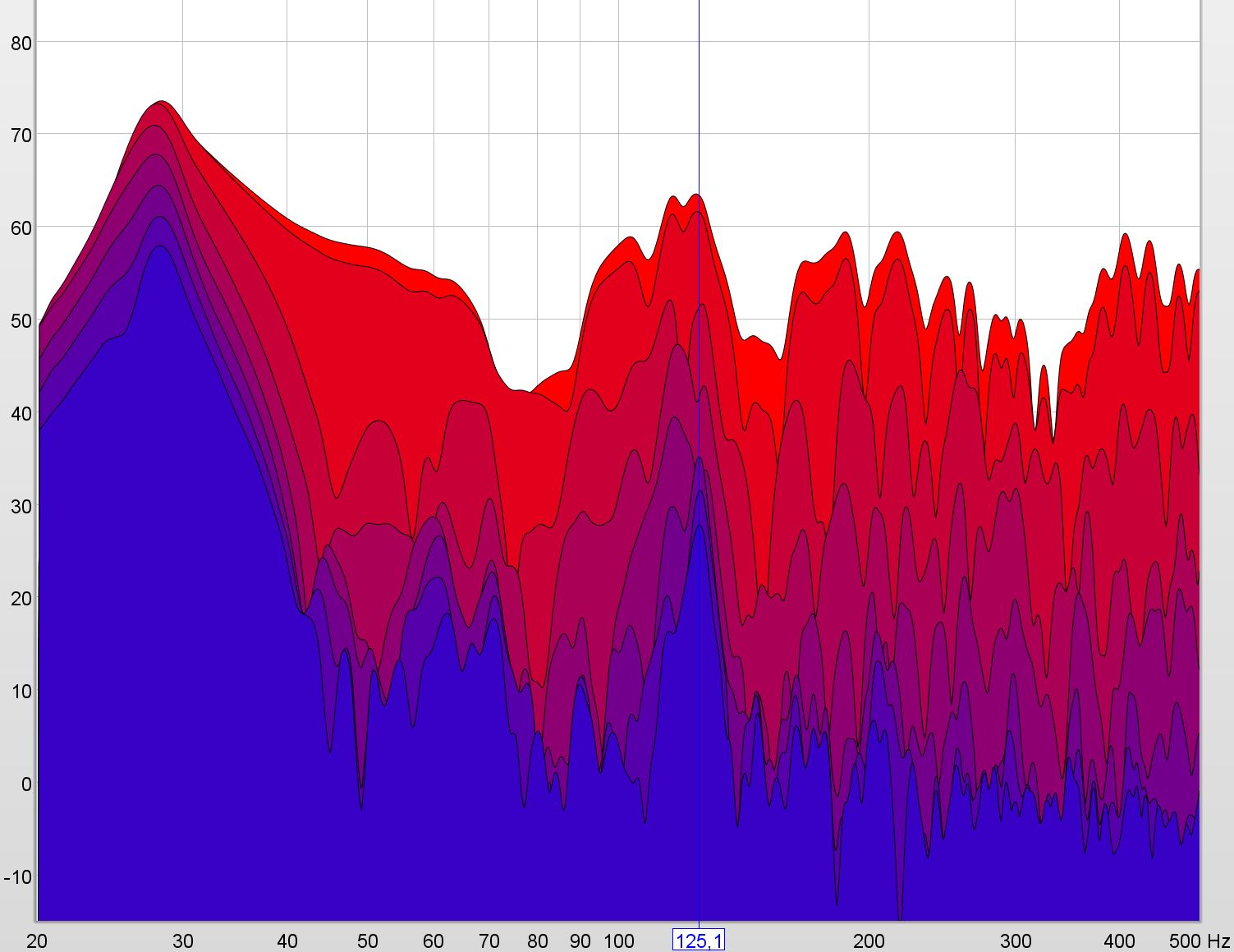 Von der Mördermode bei 28 Hz abgesehen, fällt es mir gar nicht so leicht, den Bassbereich zu beurteilen. Der Bereich unter 500 Hz dafür nochmal im Detail dargestellt: