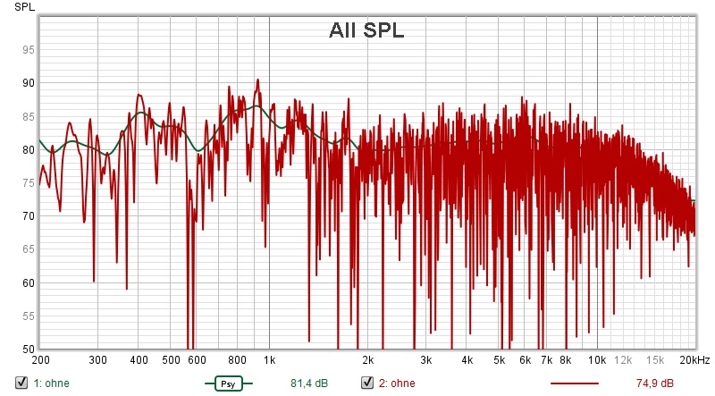, jetzt bitte den Frequenzgang 1x ungeglättet und 1x Psy von 20Hz bis 20kHz logarithmisch skaliert in EINEM Diagramm ...