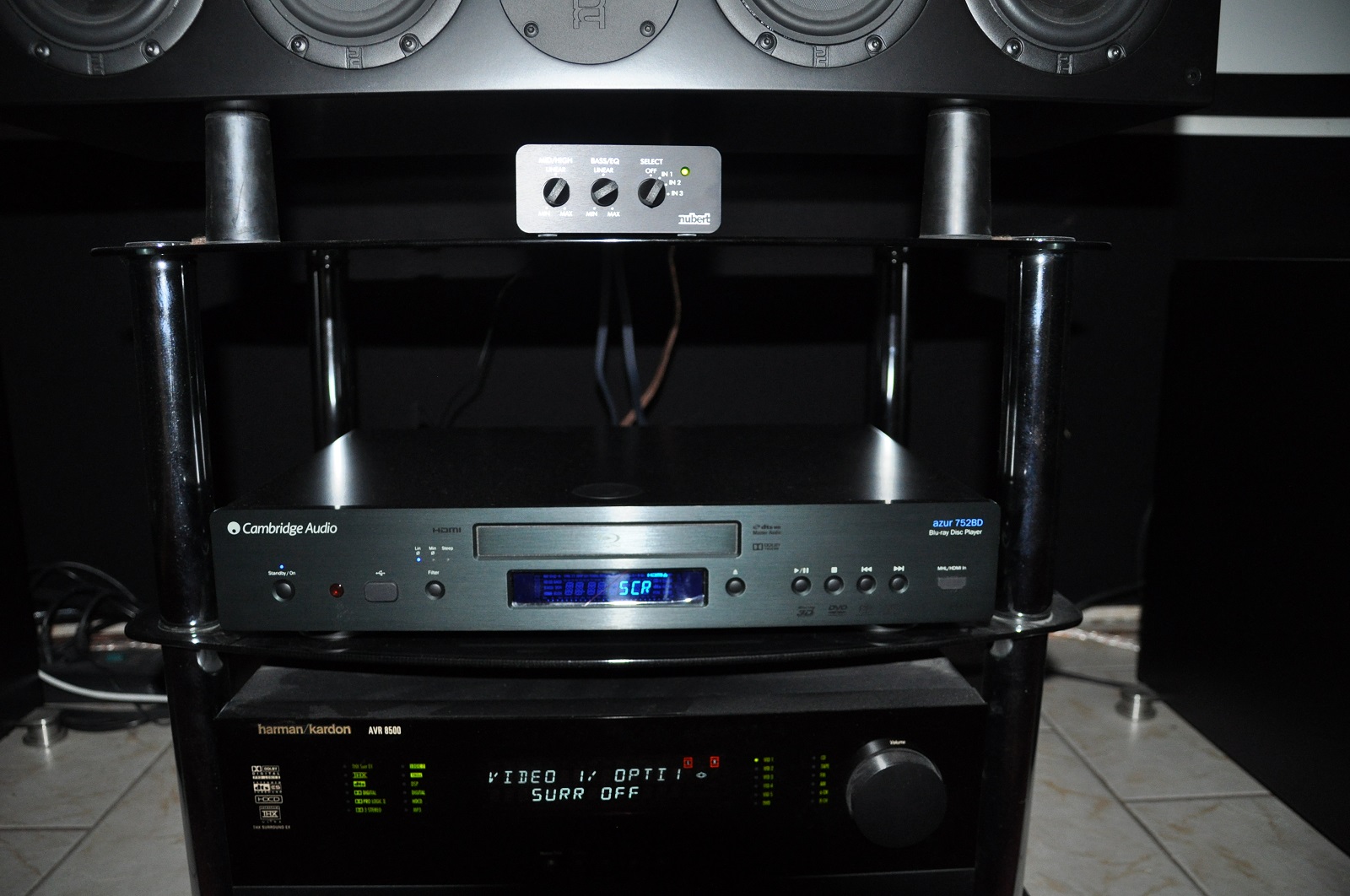 Keller:2xNV14 3xNV7 2xRS54 2xWS14 XW-1200 Cambrigde CXUHD OnkyoTX-NR3030 Rotel RMB 1095 Technics SL3310