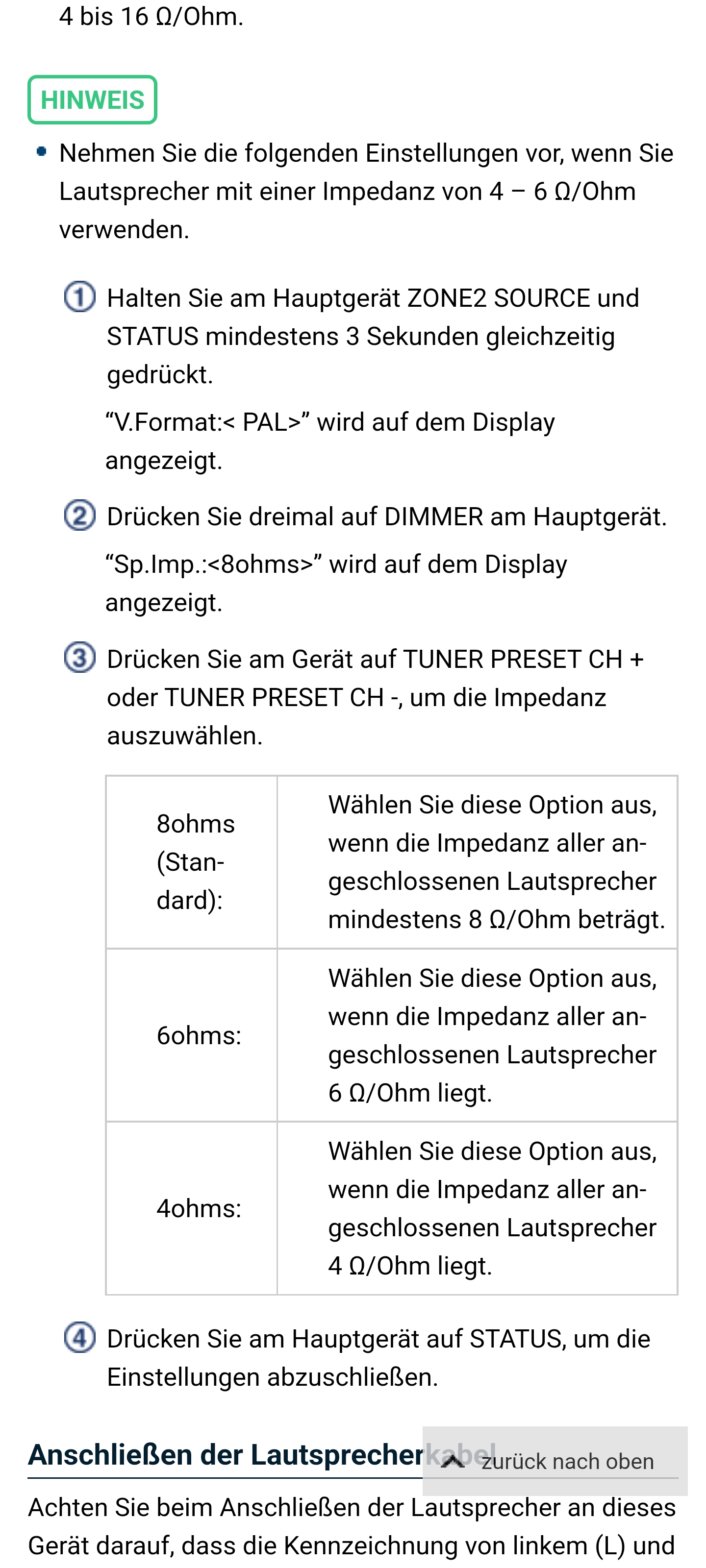 Habe es jetzt auf 4 ohm gestellt. Ist das korrekt?
