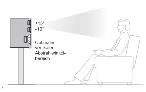 Völlig gleich, ob Du auf Deiner Couch sitzen oder liegen wirst, Deine Ohren werden mit der von Dir gegebenen Boxen-Stativ-Kombination immer im optimalen vertikalen Abstrahlwinkelbereich der Box sein.