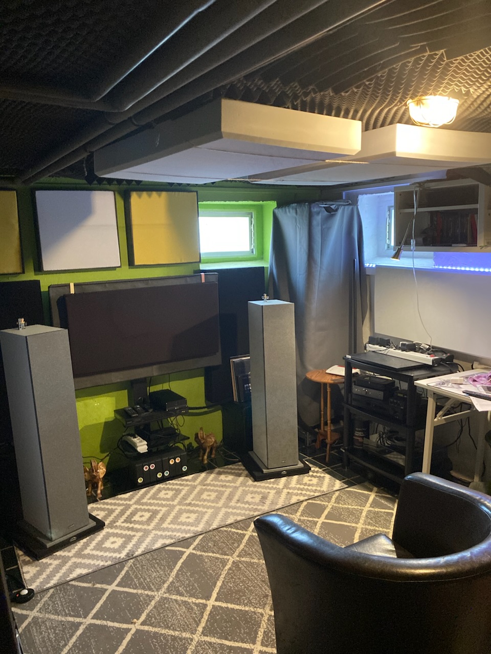 Was ich quasi umgesetzt habe, wird auch nicht allen gefallen. Kein ganz großer Vorhang, eher klein und fokussiert auf Details, hier gibts keine Phantomquellen die Effekte erhalten. Die B-70 bräuchten mehr Raum und wahrscheinlich auch mehr Abstand, aber den bekommen sie halt nicht. Es war für mich eine Herausforderung diese massiven Lautsprecher hier auf Reihe zu bekommen.