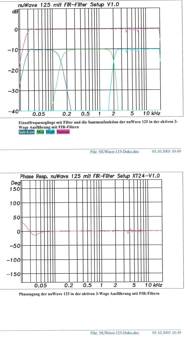 Dabei hat sich herausgestellt, dass z.B. eine nuWave 125 im Mittenbereich durch FIR-Filter-DSP-Prozessoren gehörmäßig nicht nennenswert verbessert werden kann, obwohl die Messergebnisse von Frequenzgang, Phasendrehung und group delay "atemberaubend gut" sind.