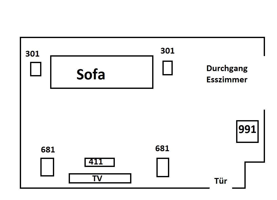 Also wieder den sub umgestellt....wieder an die besagte Wand aufgestellt im 90° Winkel zu den Fronts (Ich lade mal ein Bild davon hoch, zur Veranschaulichung)