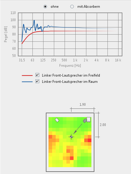 - Abstand Boxen (Front, Sub) jeweils zur Rückwand und zur nächsten Seitenwand