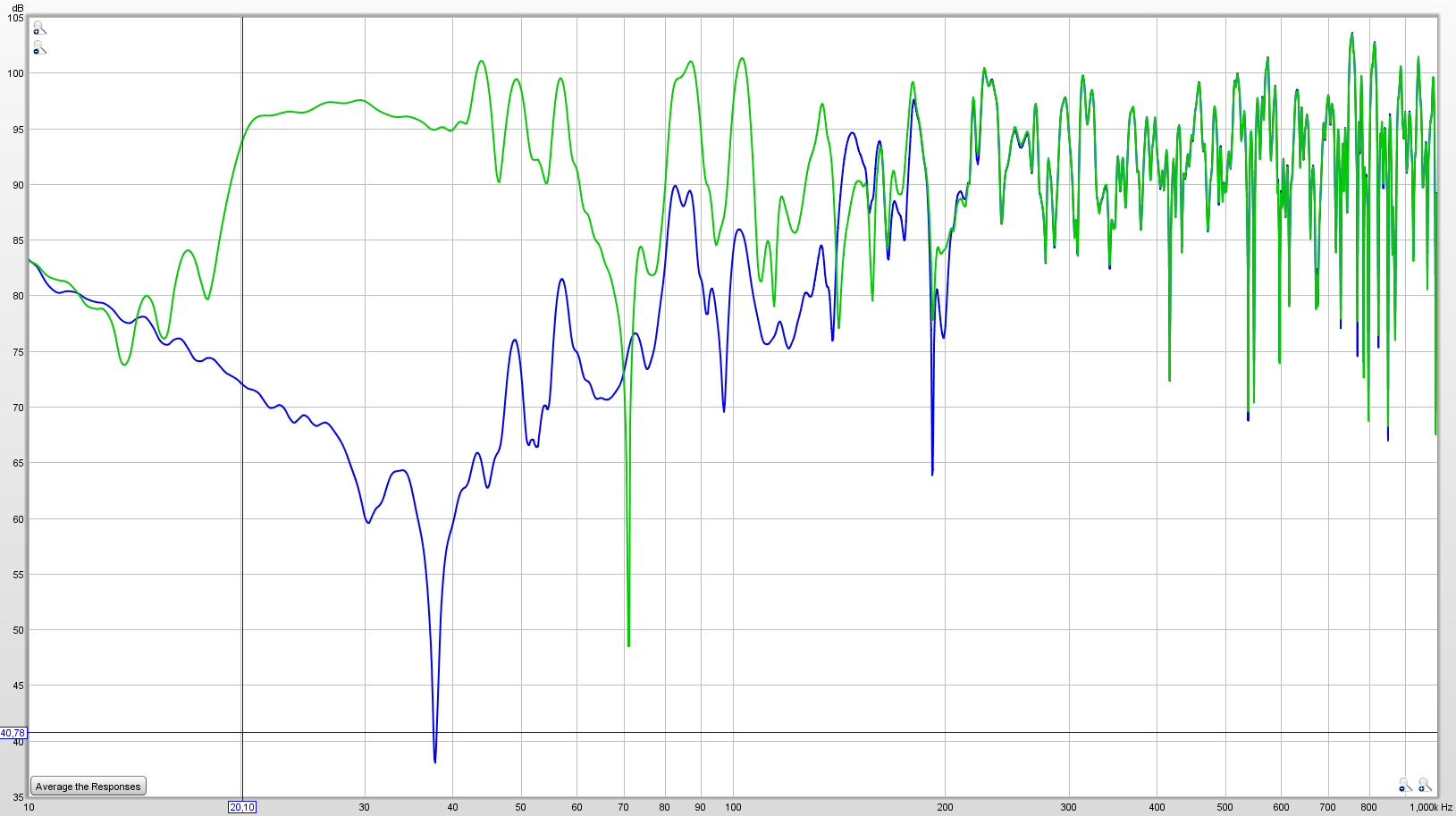 - grün Cross-Over 80 Hz und bei blau 200Hz, der Sub war aus