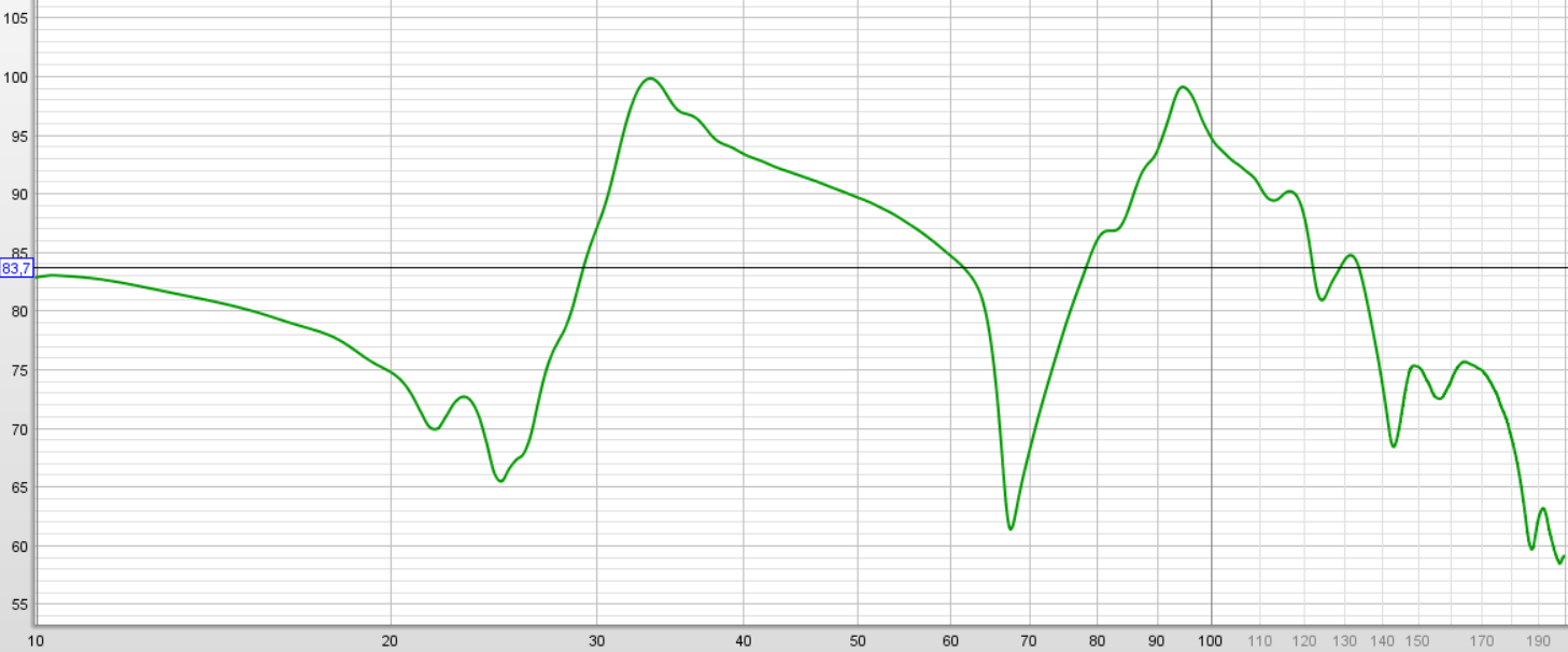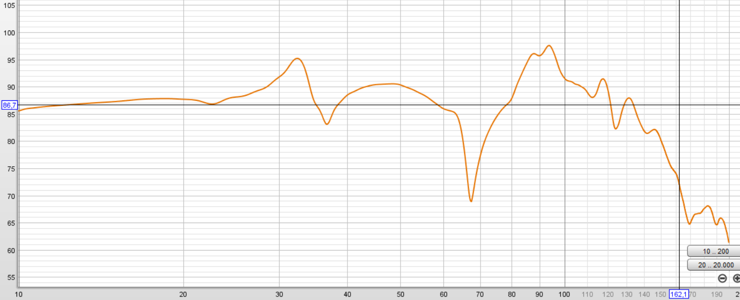 Hier das Summensignal meiner Front-Subs (die Einzelmessungen sehen fast identisch aus bis auf den Oberbass):