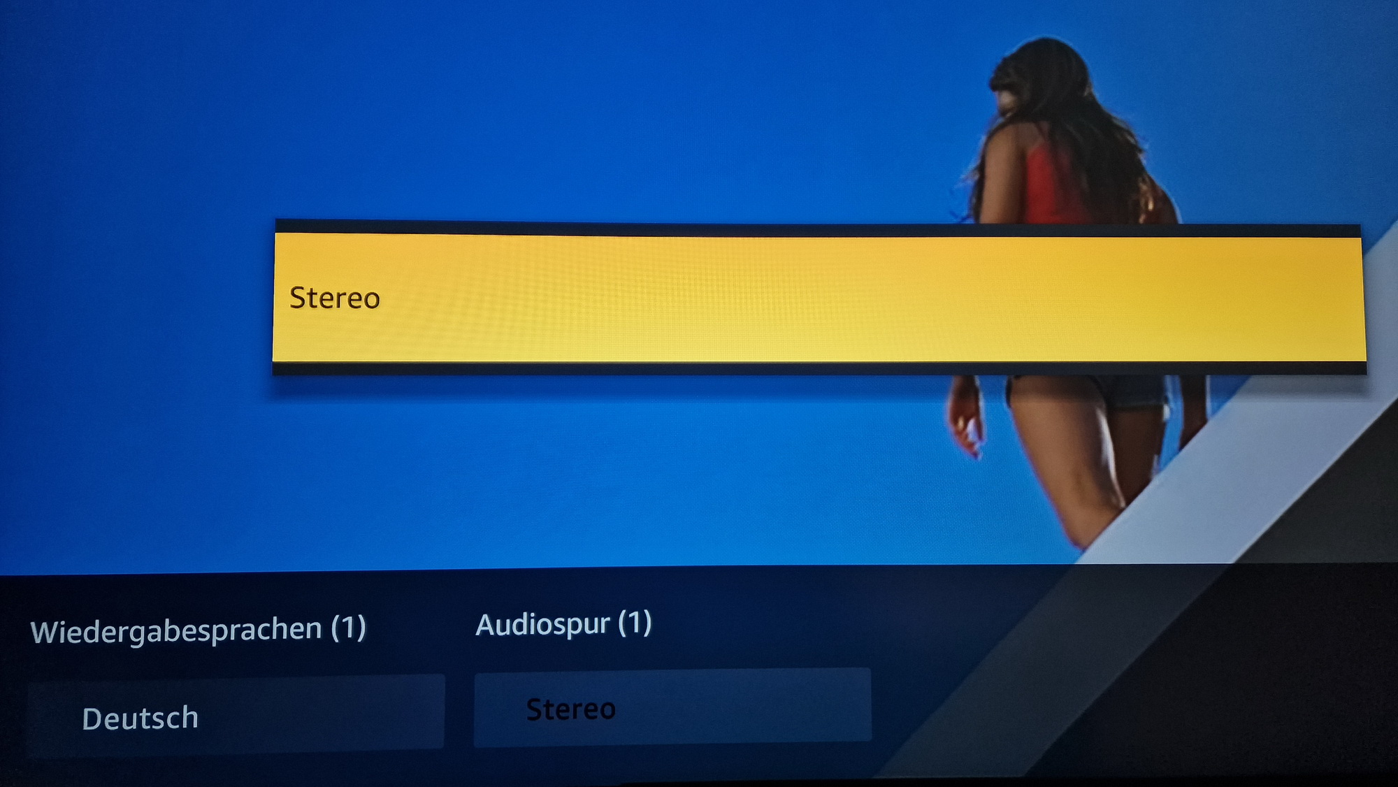 Ist in den Audioeinstellungen "PCM" ausgewählt, ist im Wiedergabe-Kontextmenü "Stereo" aktiv, kann aber trotzdem mit der Fernbedienung in "Dolby Digital Plus" gewechselt werden.