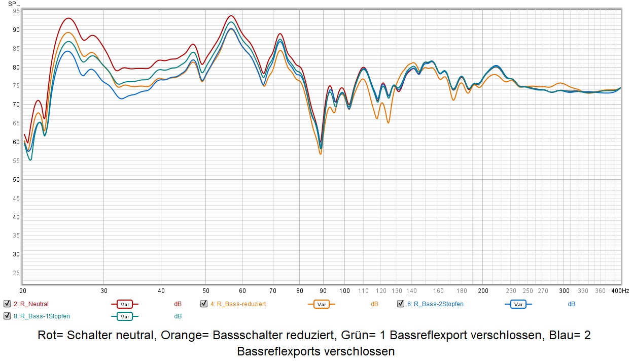 Der Basschalter "reduziert" wirkt bis ca. 200hz, das Verschließen der Bassreflexports wirktwiederum stark im Tiefbass.