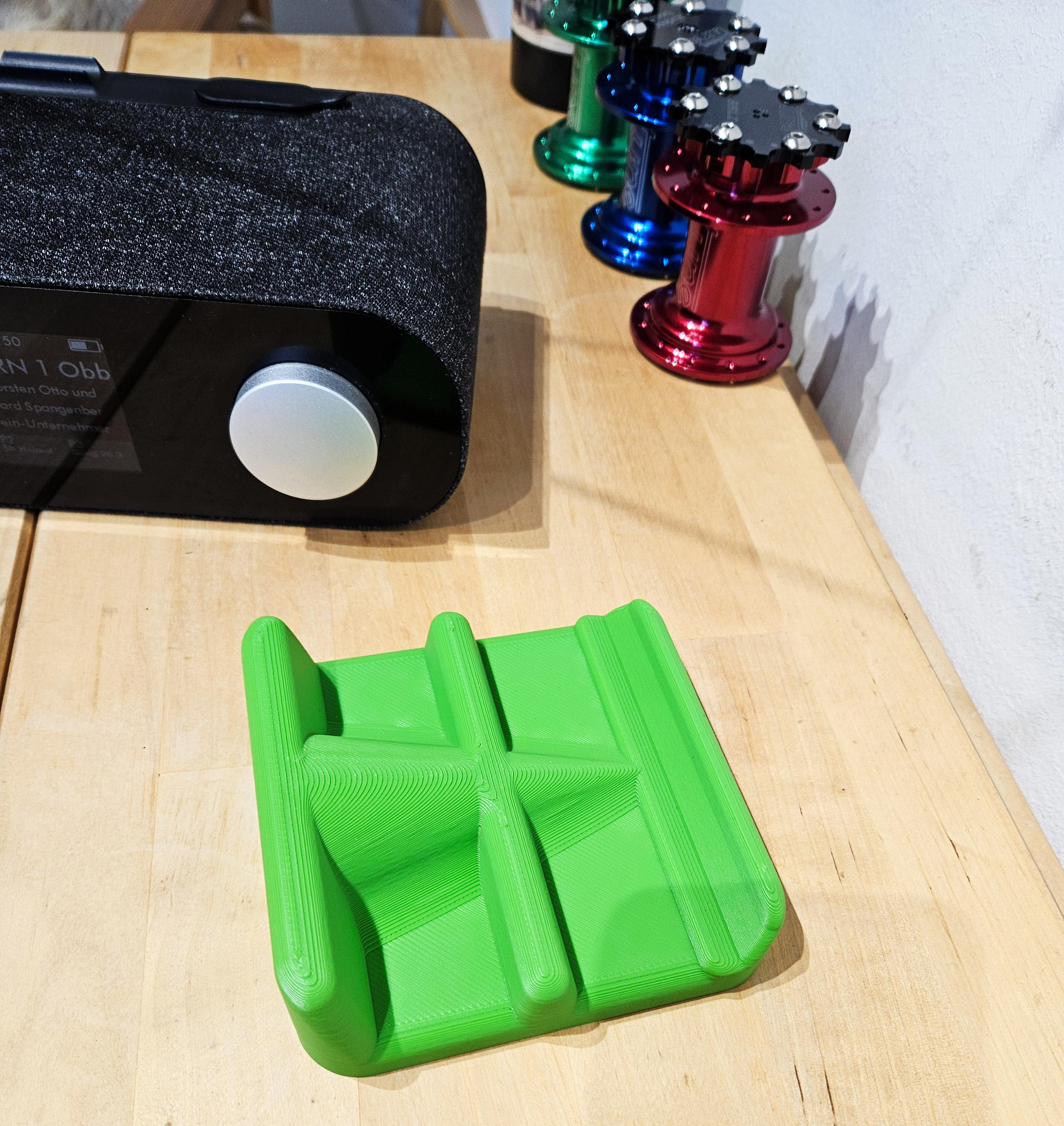 Oder ich mach das zweiteilig. unten harter Kunststoff und die Auflagefläche (und oder) die flache fläche oben aus gummi.