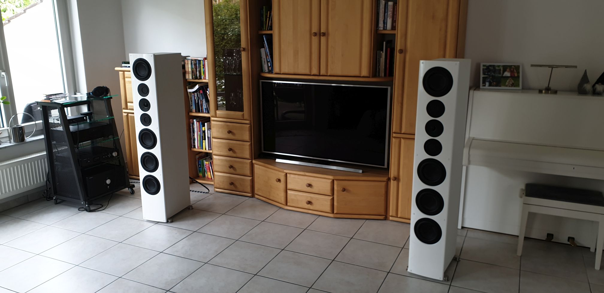 Die Herren von Nubert waren angetan, wie gut dann die Boxen in meinem ganz sicht nicht überdämpften Raum klangen. Was man hier nicht sieht, ist der Teppich und die doch umfassende Couch, auf der ich nun sitzen kann, wenn ich Musik höre.