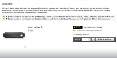 Die Boxen der auslaufenden "Farben" Kirsch und Platin werden unter Schnäppchen für ca. 20% unter Neupreis verkauft. Da heißts, wers noch braucht: "zuschlagen"
