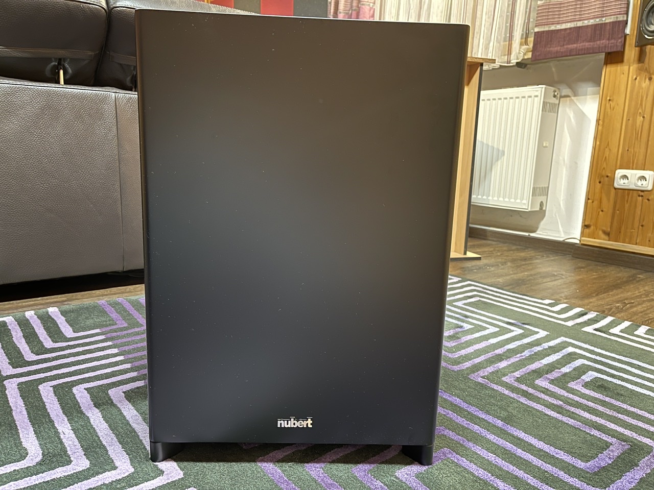 Das Silbern glänzende Nubert Logo finde ich toll. Das hätte ich kurz über den Boden gerne auf den nuVero Standlautsprecher.