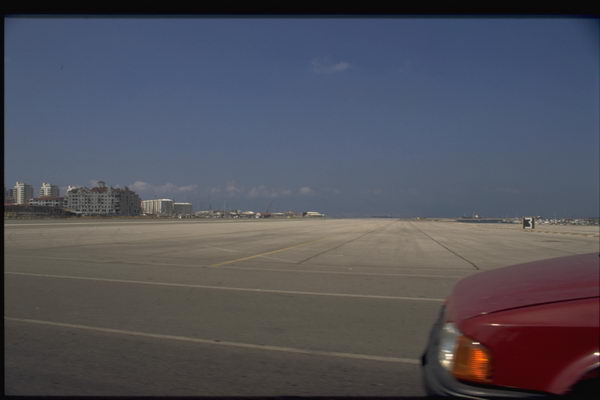 ...müsste Gibraltar sein; die einzige Flugzeuglandebahn, welche man mit dem Auto befahren darf/muss