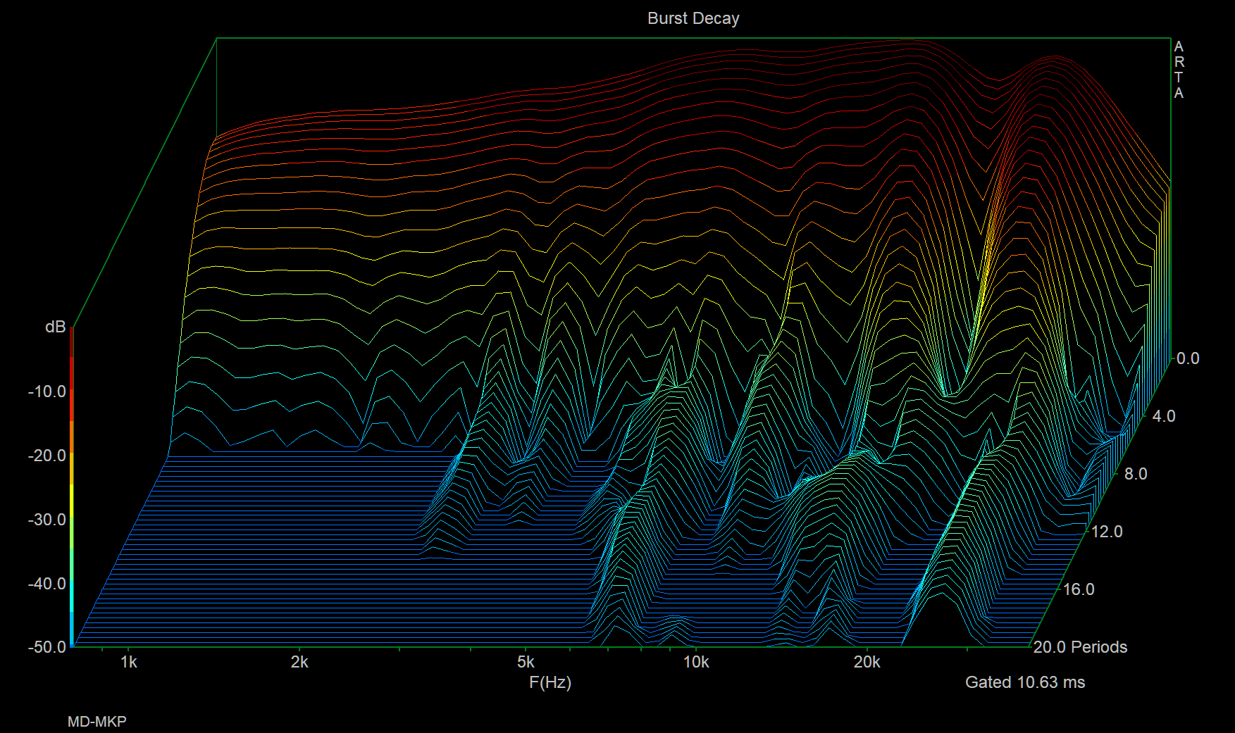 Genau das zeigt auch die Messung; das Auschwingverhalten des Hochtöners ändert sich überhaupt nicht beim Einsatz eines high-end Kondensator, selbst wenn man sich das Ausschwingen bis -50dB anschaut (animiertes gif aller drei Kondensatoren aus der Abhandlung):