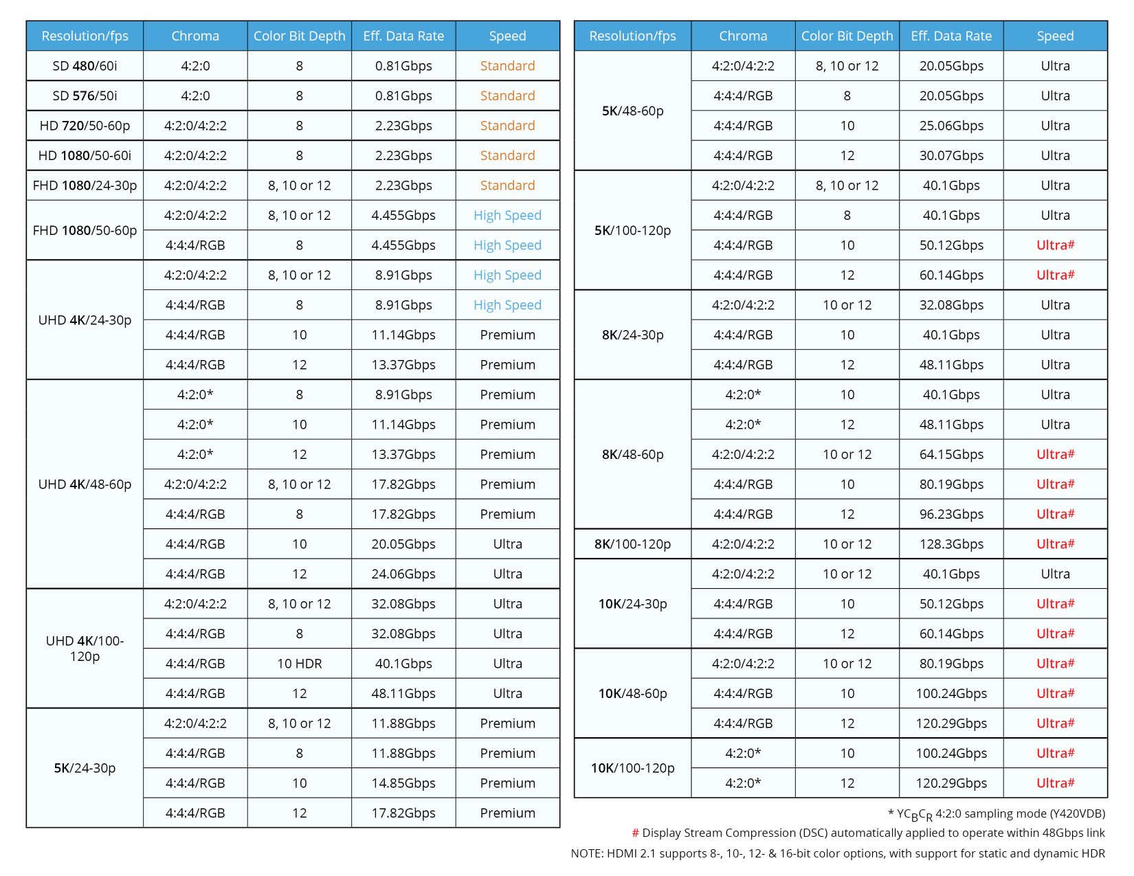 8K@30FPS@10-Bit@4:4:4 verbraucht auch 40 GBit/s. Mit 12 Bit wären es 48 GBit/s.