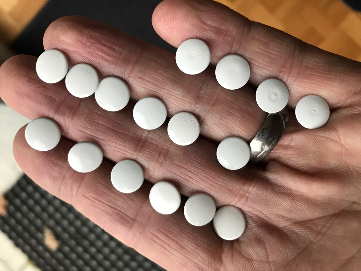 Ich brauche 16 Stück. Und von den 16 am Montag gelieferten Kappen haben mind. 6x meine persönliche Wareneingangskontrolle ebenfalls nicht bestanden (siehe Foto). Wie bei Nubert üblich, angerufen und heute waren 6 Ersatzkappen geliefert. Soweit, so gut. Von denen hätte ich allerdings 3 gleich wieder reklamieren können..