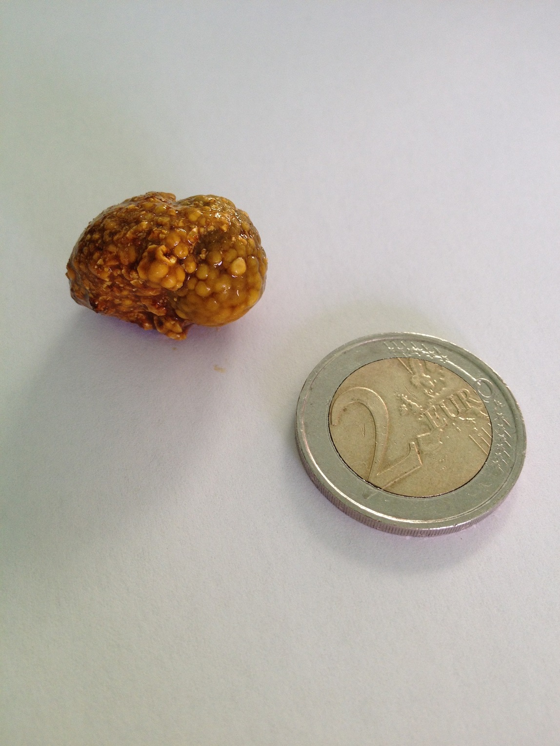 Der Chirurg hat mir auch den größten Stein als Geschenk mitgegeben. Der sieht aber ekelhaft aus.....