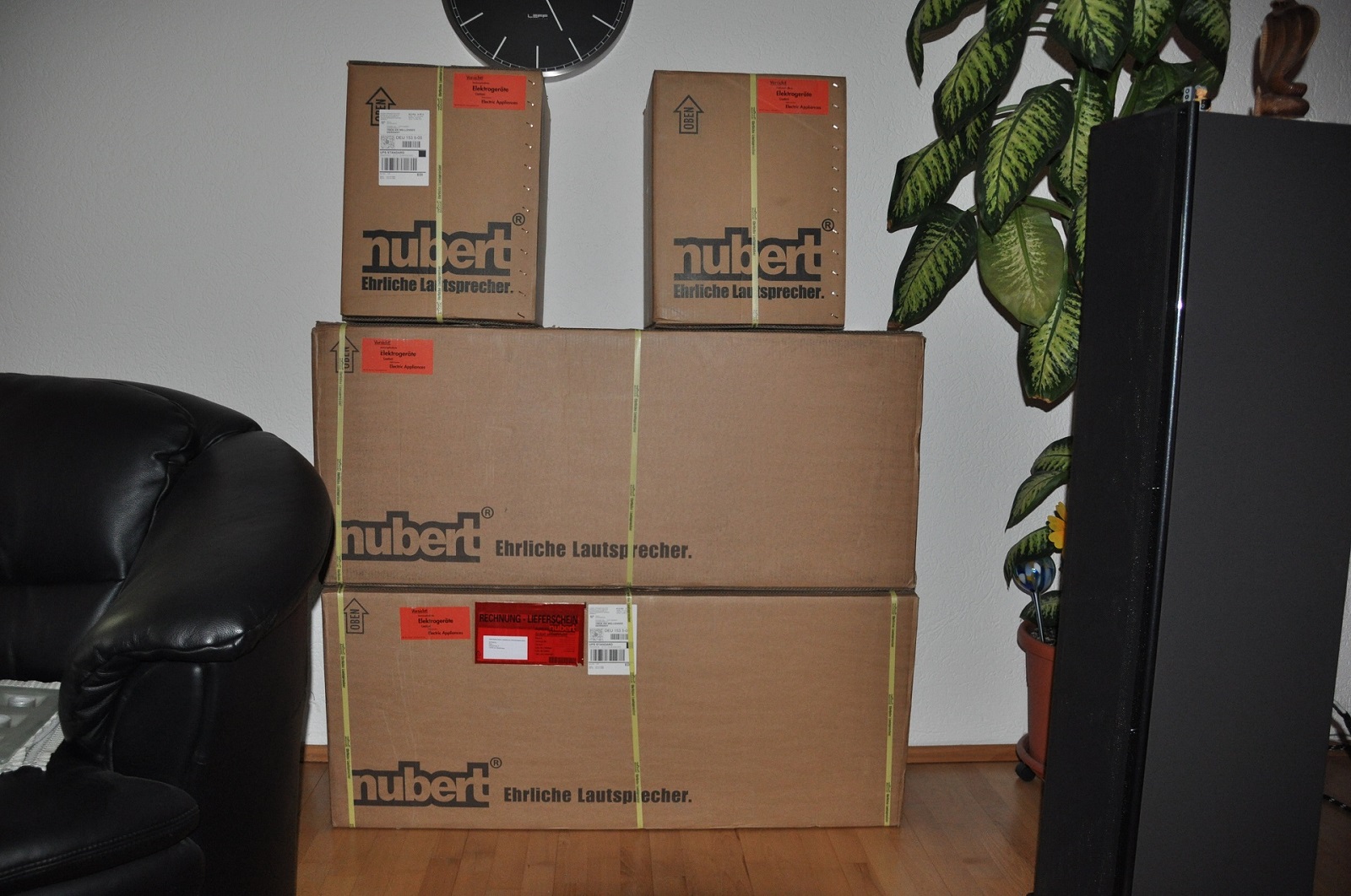die Pakete von der Fa.Nubert sind eingetroffen.Vielen Dank an Herrn Spiegler und Herrn Bühler.Innerhalb von 2 Tagen waren die Pakete da.