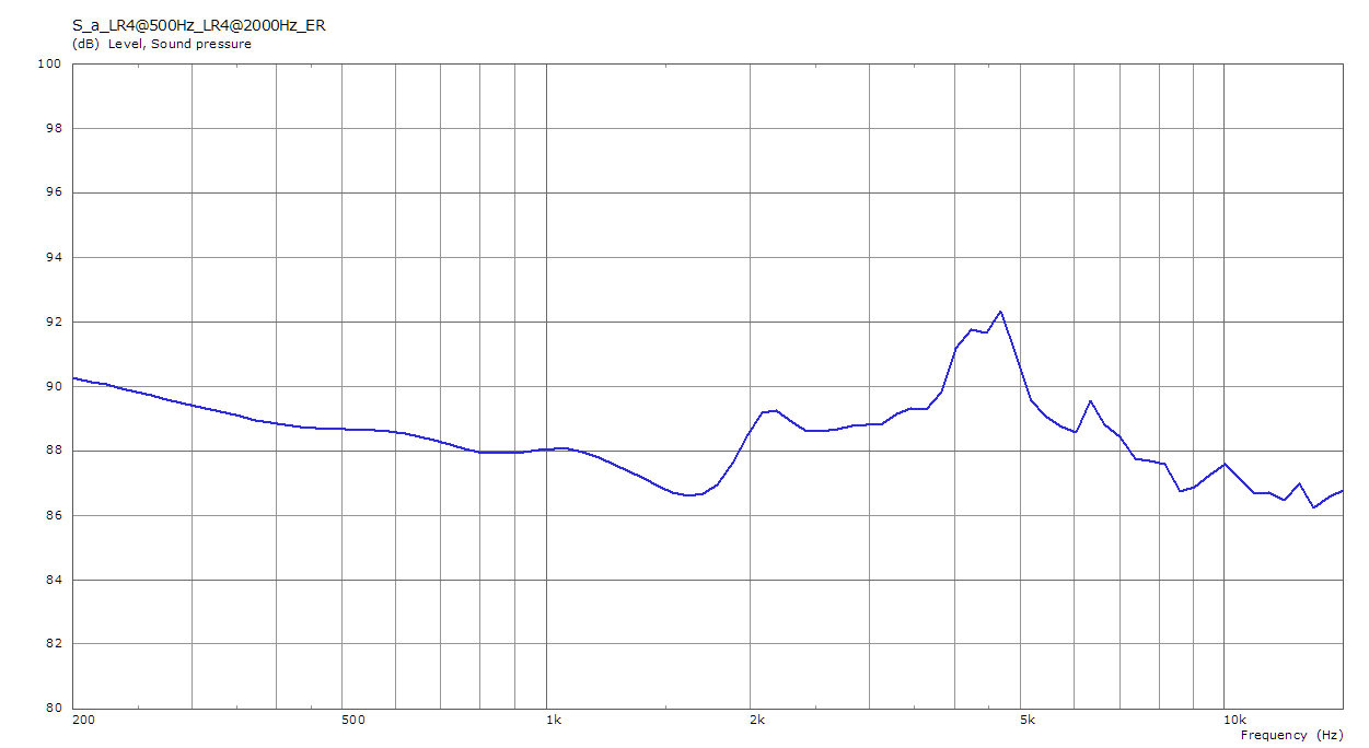 Die von Markus mit REW gemessene Raumkurve eines LS kann für einen "typischen" Hörraum ebenfalls annähernd simuliert werden. Dies würde dann wie folgt aussehen: Dies wäre auch der Ausgangspunkt für die Raumentzerrung. Es ist klar, dass zwischen 3.5-5.5kHz zu viel "Schallenergie" in den Raum abgegeben wird. Also wird dies z.B. mit einem param. EQ korrigiert. Das bedeutet aber, dass das einzige Gute des LS, der lineare Achsen-FG zunichte gemacht wird und sich damit der Charakter des Direktschall ändert. In diesem Fall würde auf Achse eine breite Senke mit wahrscheinlich über 3dB entstehen. Damit würde der LS vielleicht nicht mehr "unangenehm" klingen, aber durch den veränderten Direktschall garantiert nicht mehr "richtig", d.h. Instrumente würden einen unnatürlichen Klangcharakter erhalten.
