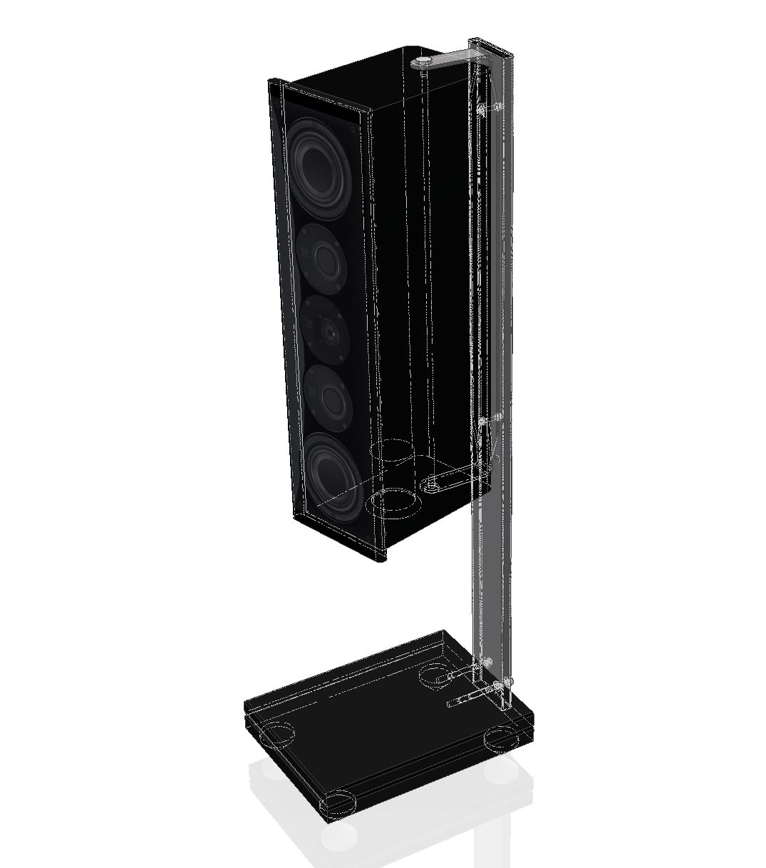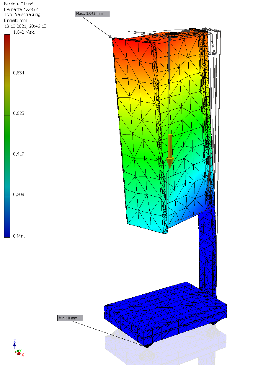 hier nochmal ein gerendertes Bild vom Stativ, hab jetzt nochmal die "Stange" durch Rechteckrohr 100 x 20/o.40 x 2 ersetzt, da können dann Kabel reingezogen werden, ggf. mit Beton/Epoxitharz ausgießen. Flachstahl in Edelstahl gebürstet kann ja gerade kein Mensch bezahlen 8O 8O 8O, außerdem ist so das Widerstandsmoment noch höher :