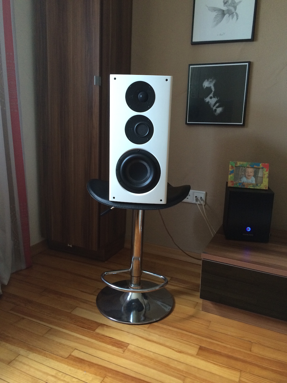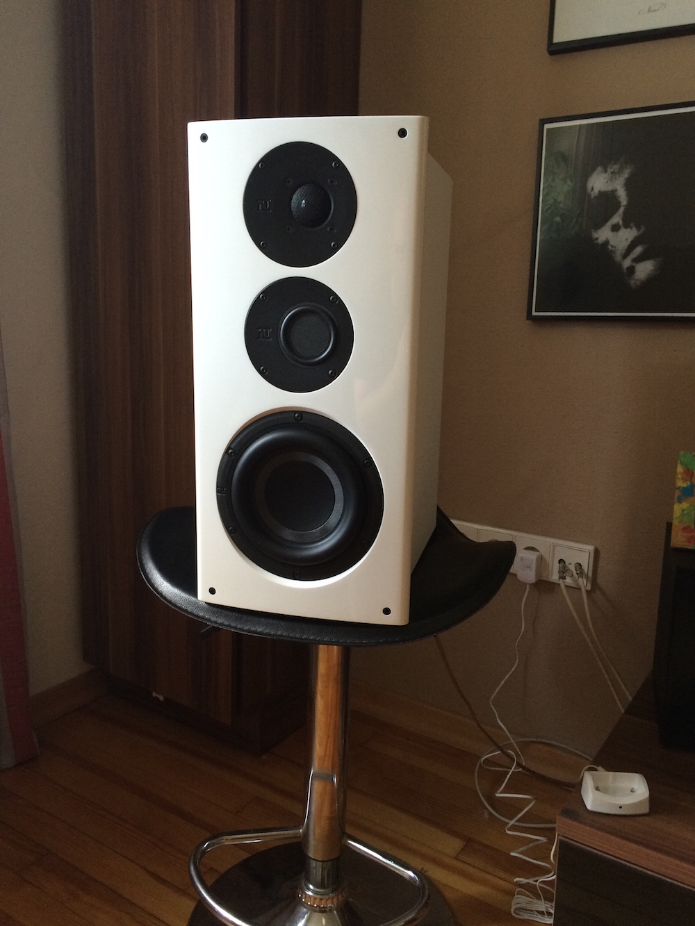 So, UPS war auch hier. Mann das Paket ist ganz schön unhandlich. Beim auspacken musste ich doch einmal schlucken - die Teile sind doch ganz schöne Brocken. Von "Regallautsprecher" kann hier absolut keine Rede sein. Aber so dachte ich mir das. Von den Proportionen gefällt sie mir jedenfalls besser als die nuVero 4 Pummelchen. Auf die schnelle verkabelt und auf provisorische Ständer gestellt. Das "Kristallweiss" ist sehr hübsch, viel schöner als das vergilbte Weiß der 4er. Die schwarze Variante würde ich auch gerne mal in natura sehen, stelle ich mir auch sehr elegant vor!