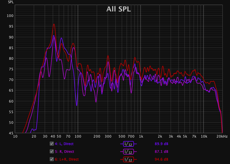 Bei den Messungen finde ich es auch spannend, dass bei aktivem Audyssey der Bass-Bereich ganz gut linearisiert wird, wenn man L und R jeweils separat betrachtet. Zusammen gespielt allerdings kommt der bekannte Dip - den habe ich dann versucht manuell über die Audyssey App auszugleichen, indem ich den Bereich angehoben hab. Das Ergebnis sieht erstmal in der Messung ganz ok aus (bis auf den Anstieg um die 100Hz), würde aber gleich noch Probehören.