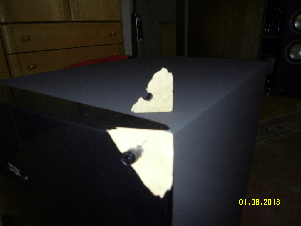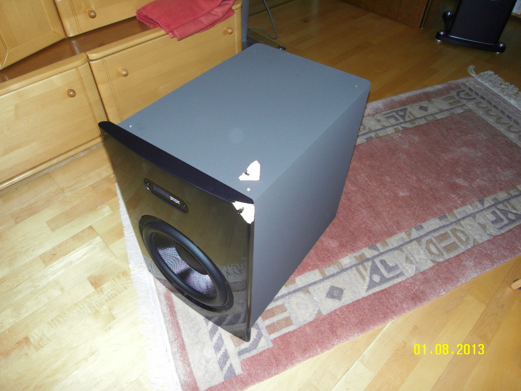 Ich weiß nicht, ob die Macke schon war. Es könnte bei dem weichen Material sein, dass die eventl. beim Auspacken reingekommen ist. Wir haben den Sub kurz auf den Kartonrand abgesetzt. Eigentlich kann es nur (wenn) da passiert sein. Gemerkt haben wir, wie gesagt, nichts. Erst als ich oben war (1.OG, eine Treppe hoch) und ihn Kopfüber auf den Teppisch absetzte, sah ich einen Haarriss. Kurz gezogen und das Teil war in der Hand.