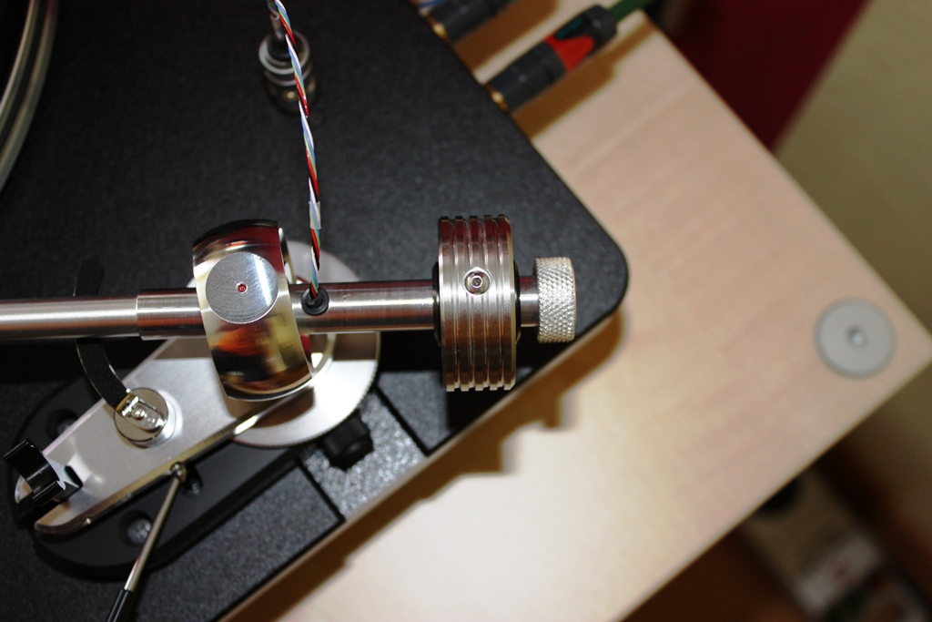 Ich meine mit seiner recht harten Nadel verlangt der theoretisch nach einem etwas schwereren Tonarm als meiner (10,2 g eff. Masse), aber durch das hohe Gewicht des Abnehmers (12g) und das weit hinten sitzende Gewicht am Arm sollte diese so weit ich weiß etwas steigen und somit, hoffentlich im grünen Bereich bleiben.