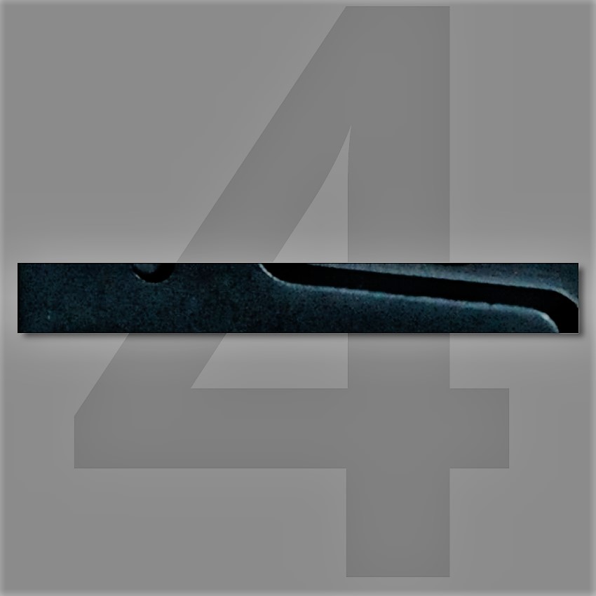 der 4. Ausschnitt ist eine sehr starke Vergrößerung eines "gravierten" Schriftdetails oder Logos in einem Kunststoffspritzguss- oder lackierten Aludruckgussteil