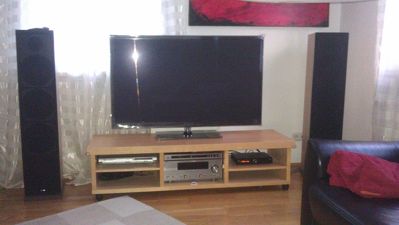 Ansonsten kommen zwischen Platte und TV wieder meine LEDs und jetzt möchte ich versuchen, den TV so hoch zu hängen, dass der Center unter den TV passt --> noch besserer Sound :D