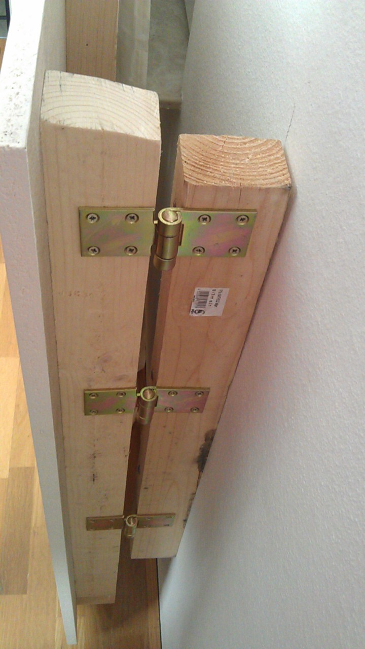 - An die rechte Seite kommt ein weiterer Balken an welchem drei massive Scharniere angebracht werden.
