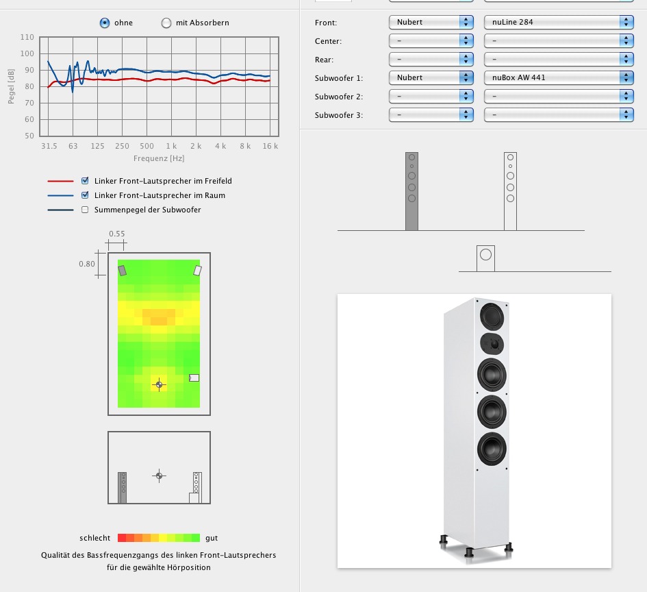 Dann habe ich bei Nubert angerufen und es war klar: Dämpfung, Dämpfung, Dämpfung muss her. Die Höhen/Mitten werden zu stark wahrgenommen und verdecken den vorhanden Bass, war die Analyse. Und die gazeartigen Gardinen vor den fenstern dämpfen schon mal gar nichts, wie ich zuerst dachte und überhaupt, viel zu kahl alles.