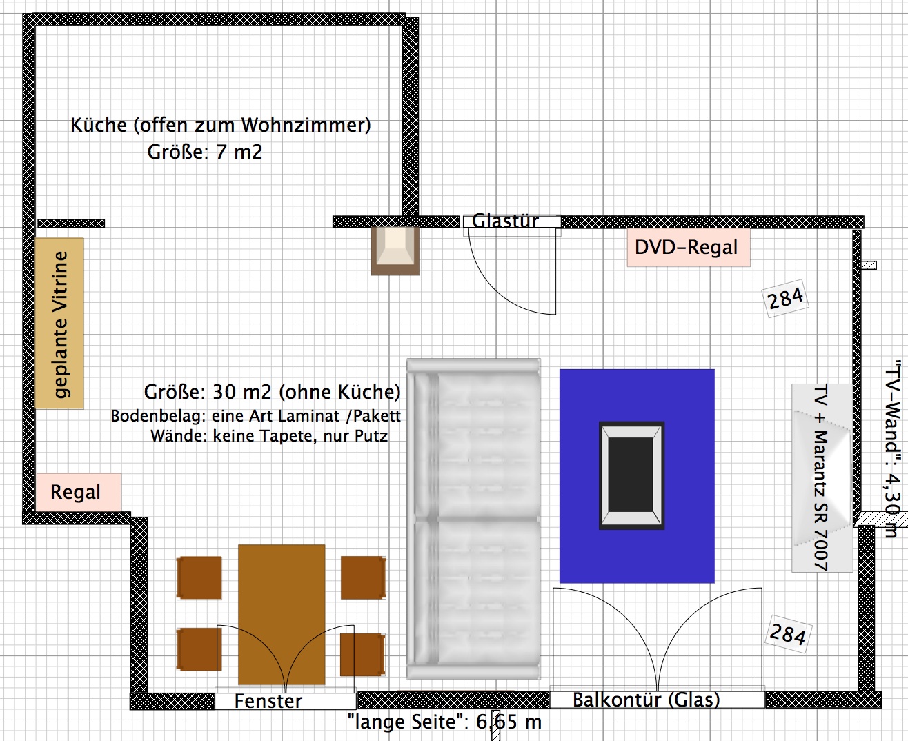Eine Skizze des neuen Wohnzimmers seht ihr unten oder in meiner Galerie (die anderen Fotos aus der Galarie stellen meinen jetzigen Wohnraum dar und geben einen Einblick auf mein Mobiliar, welches auch in der neuen Wohnung Verwendung finden wird).