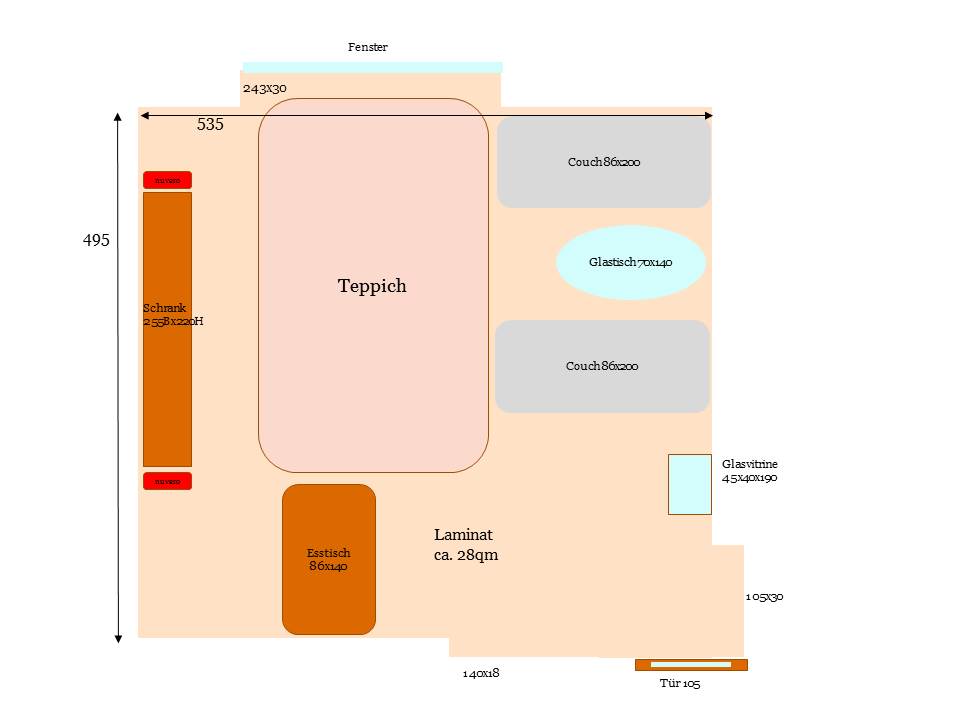 Ich werde noch eine Sitzgelegenheit (Sessel o.Ä.) kaufen die dann entsprechend positioniert werden kann/wird.