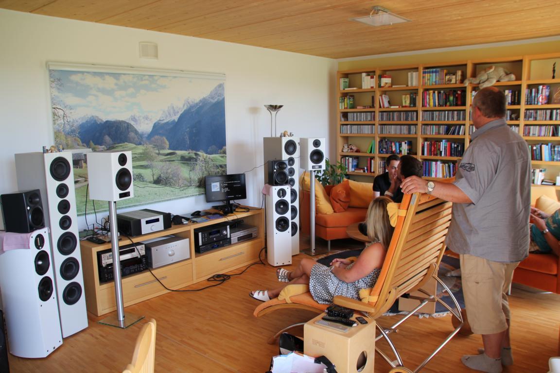 Nach ein paar wirklich unterschiedlichen Stücken ging es dann wieder nach unten in das Wohnzimmer wo neben der bekannten Kombi aus nuVero 14 und nuLine AW-1300 DSP auch die "