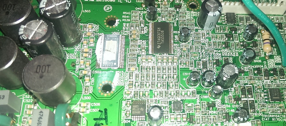 Als Verstärker IC arbeitet hier ein TAS 5518 von Texas instruments. Gepaart mit einer aufwändigen Ausgangsfilterung und gut großen Spulen (hier wird häufig gespart).